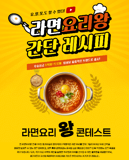 - 라면 요리왕 대회: 본선 5월 11일 / 우승 시 1억 원 + 상품화