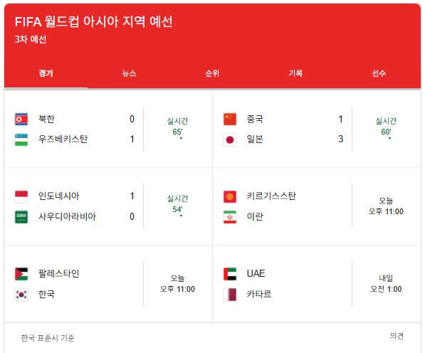 19일 밤 11시, 한국과 팔레스타인전이 생중계됩니다. 이번 경기는 월드컵 아시아 3차 예선 순위에 결정적인 영향을 미칩니다. 특히, 승리 시 조 선두 자리를 확고히 다질 수 있어 반드시 잡아야 할 경기입니다.